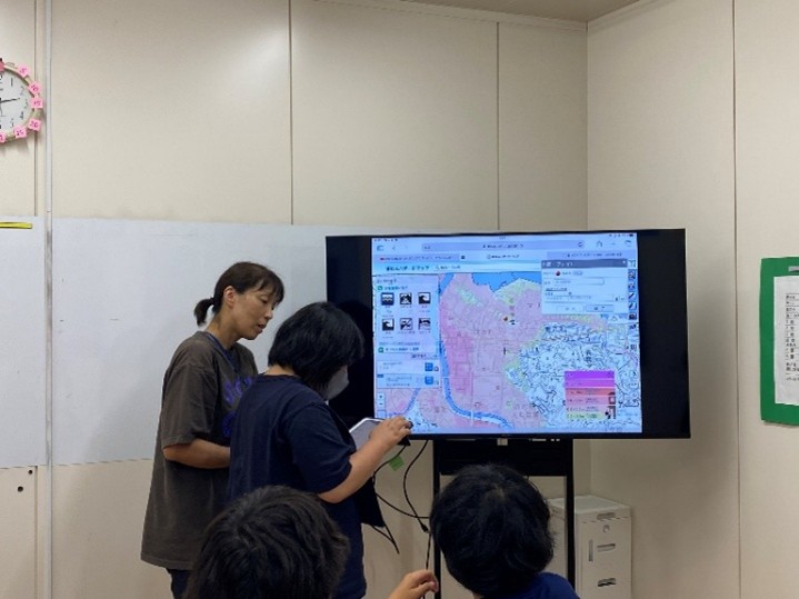 震災後余震が続く中で、少しの揺れでも敏感に感じおびえる生徒や、緊急地震警報や避難訓練のアナウンスなどに過敏な生徒がいる。今後、自分が暮らすこの場所で、どのような災害が起こる可能性があるか、災害が起こった時に、自分は何をすれば安全か何を準備しておけば安心なのかを理解して、生活ができるようにとこの単元を設定した。ねらいは、学校や自宅周辺のハザードマップを確認し、起こりうる災害について知り、避難場所を確認することである。生徒一人一人が危険を防ぐためにどうするべきか考える力を身につけ、実際に災害(主に地震)が起こった時に、少しでも落ち着いて行動する姿を目指したい。生徒の活動は、イラストを用いて、いろいろな災害について知り、学校や自宅周辺のハザードマップを、大型ディスプレイで確認する。そして、動画を視聴し、災害が起こった時に、何が起こるか知り、危険を防ぐために、何をするべきか考える。まとめとして、ワークシートを利用し、落ち着いて行動することが重要なことを理解することである。